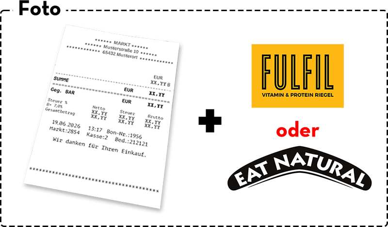 Ein Foto des Kaufbelegs zusammen mit der Produktpackung auf der Aktionswebsite www.fulfil-eatnatural-gratistesten.de hochladen.